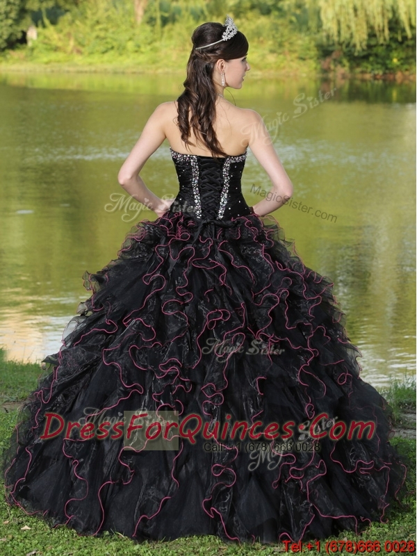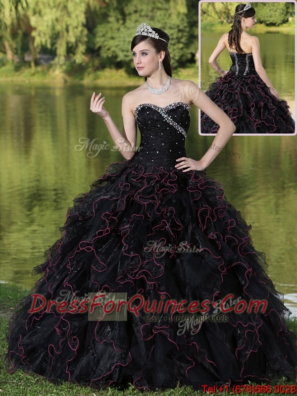Discount Ruffles Layered and Beading Quinceanera Gowns in Black