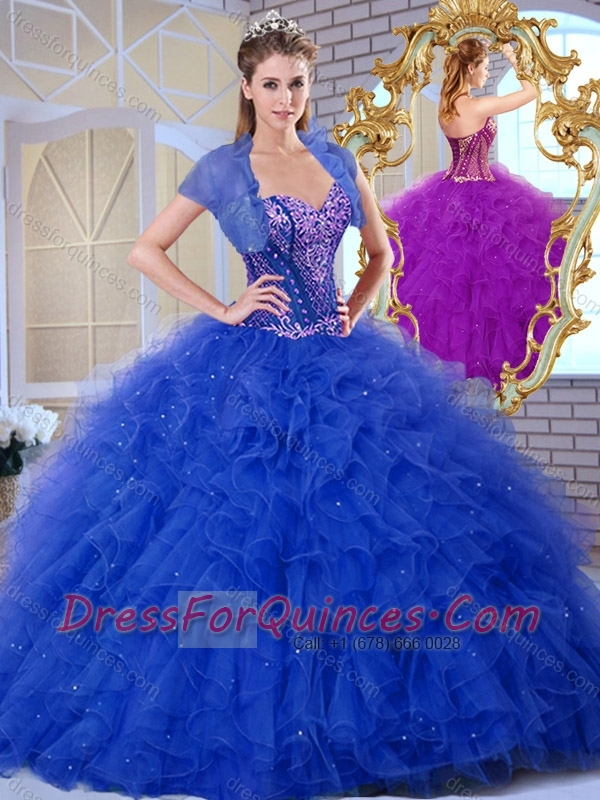 Discount Sweetheart Blue Quinceanera Dresses with Ruffles and Appliques