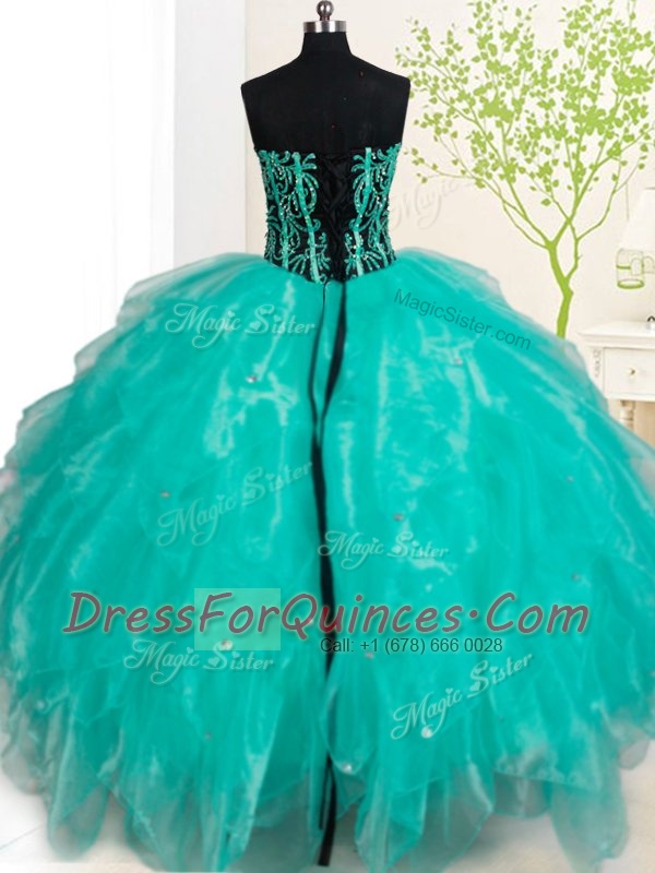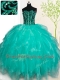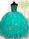 Dramatic Sleeveless Beading and Ruffles Lace Up Quinceanera Gown