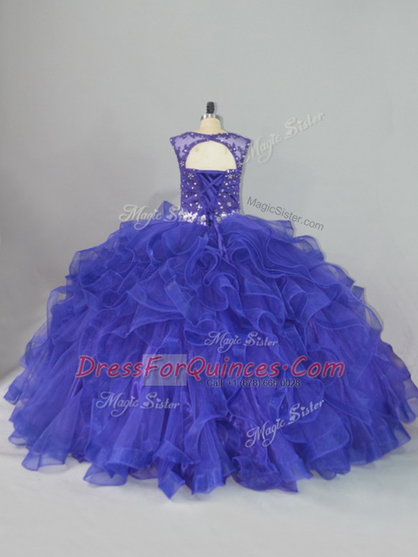 Enchanting Floor Length Blue 15th Birthday Dress Scoop Sleeveless Lace Up