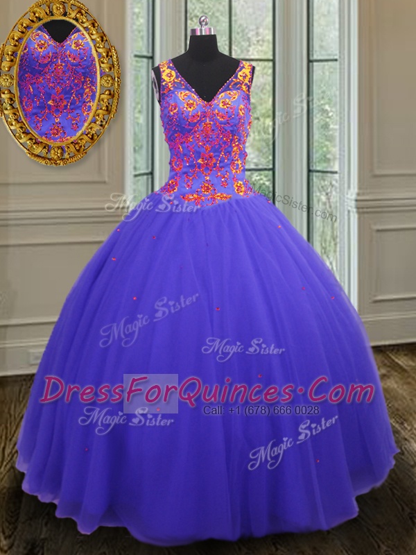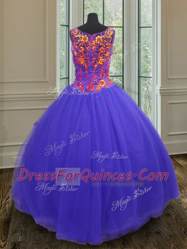Exceptional Floor Length Blue Quinceanera Dresses Tulle Sleeveless Beading