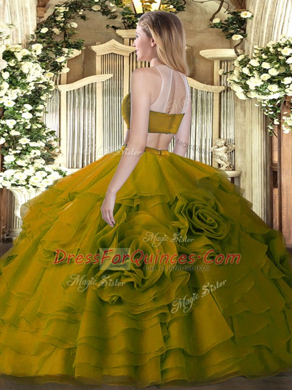 Exceptional Green High-neck Backless Beading and Ruffled Layers Sweet 16 Dresses Sleeveless