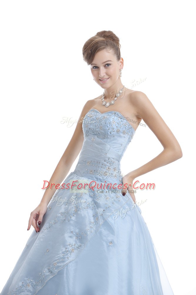 Exquisite Sweetheart Sleeveless Organza Quinceanera Gown Embroidery Lace Up