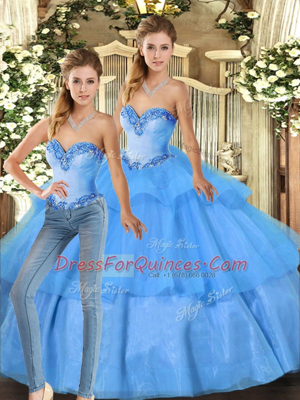 Extravagant Baby Blue Quinceanera Dresses Military Ball and Sweet 16 and Quinceanera with Beading and Ruffled Layers Sweetheart Sleeveless Lace Up