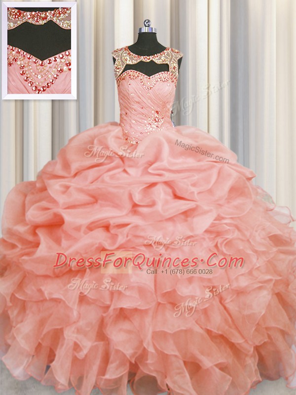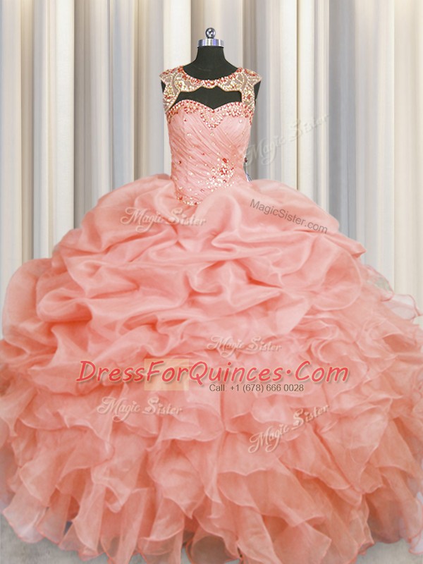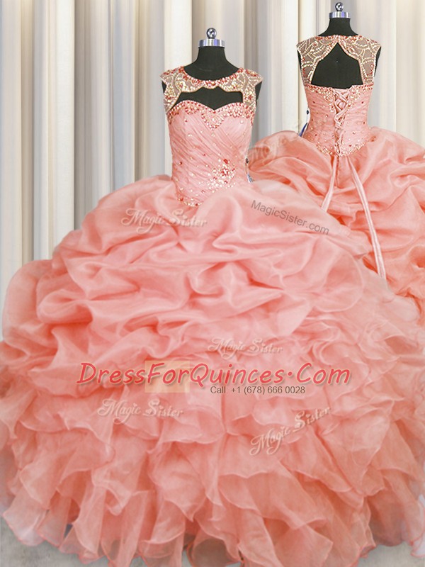Fantastic Scoop Sleeveless Beading and Pick Ups Lace Up Quinceanera Dresses