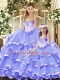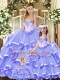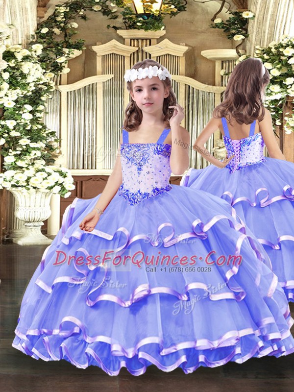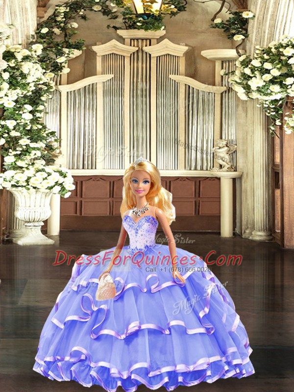 Fine Lavender Ball Gowns Beading and Ruffled Layers Quince Ball Gowns Lace Up Tulle Sleeveless Floor Length