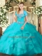 Floor Length Lace Up Sweet 16 Dresses Aqua Blue for Military Ball and Sweet 16 and Quinceanera with Beading and Ruffles
