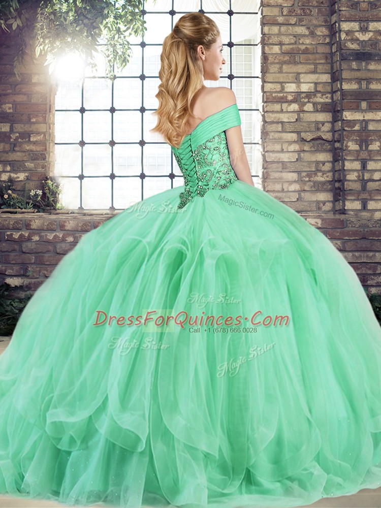 Lavender Ball Gowns Tulle Off The Shoulder Sleeveless Beading and Ruffles Floor Length Lace Up Quinceanera Dresses