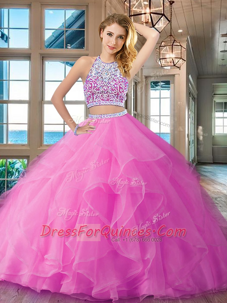 Lilac Scoop Backless Beading and Ruffles Quinceanera Dresses Sleeveless