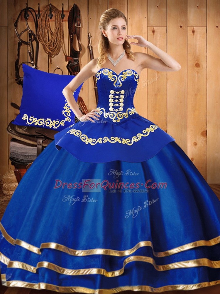 Most Popular Satin and Tulle Sweetheart Sleeveless Lace Up Embroidery 15 Quinceanera Dress in Blue