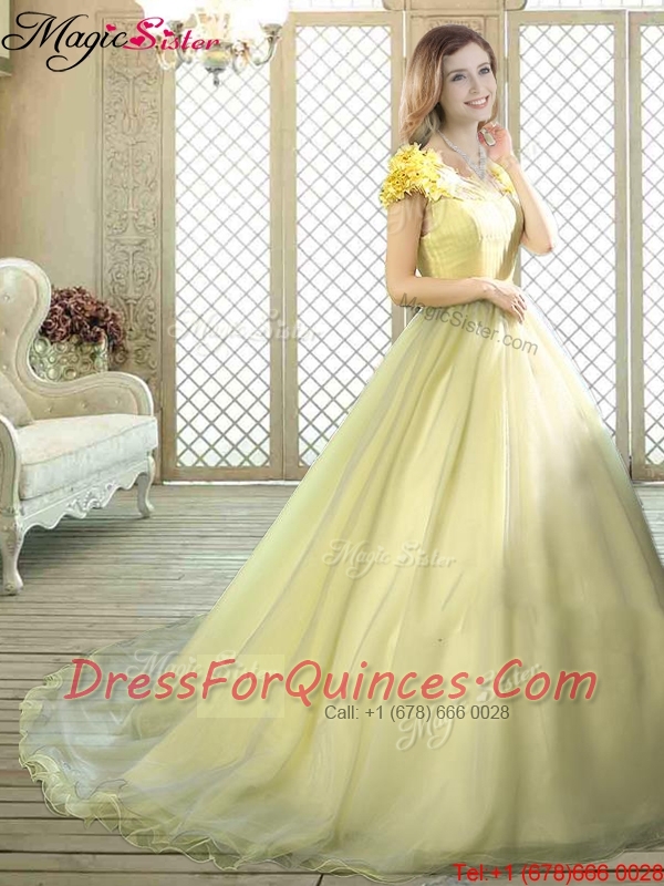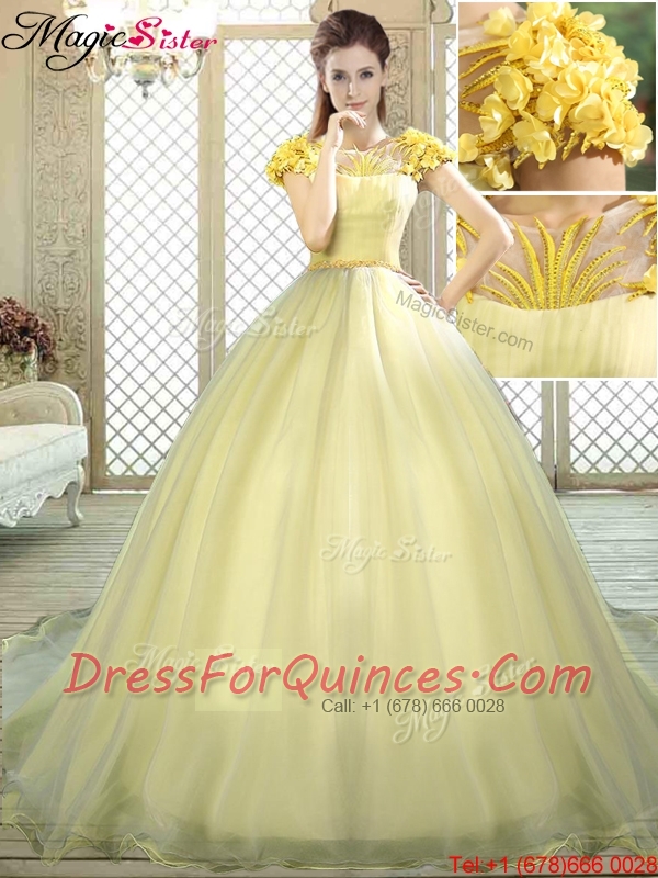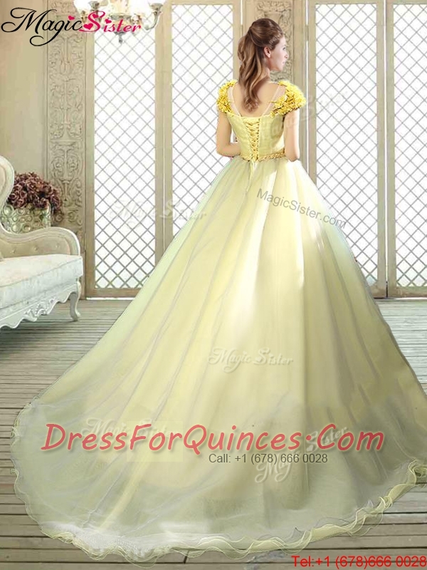 New Arrivals Bateau Brush Train Quinceanera Dresses