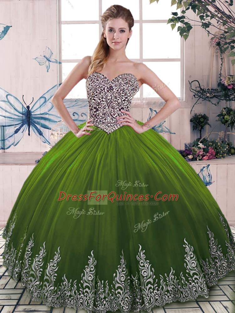 New Style Olive Green Sweetheart Neckline Beading and Embroidery 15 Quinceanera Dress Sleeveless Lace Up