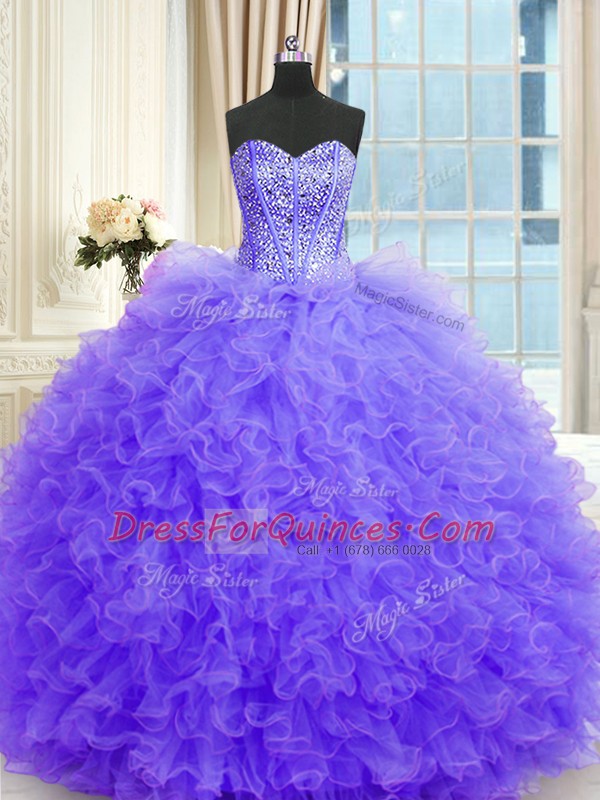 Noble Lavender Lace Up 15th Birthday Dress Beading and Ruffles Sleeveless Floor Length