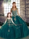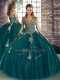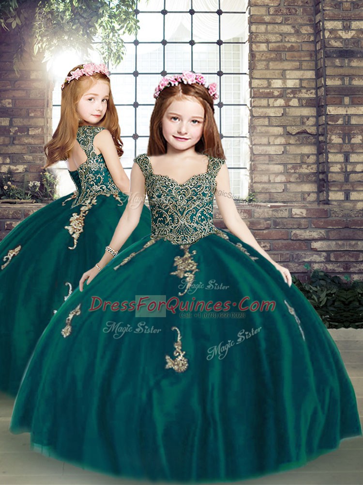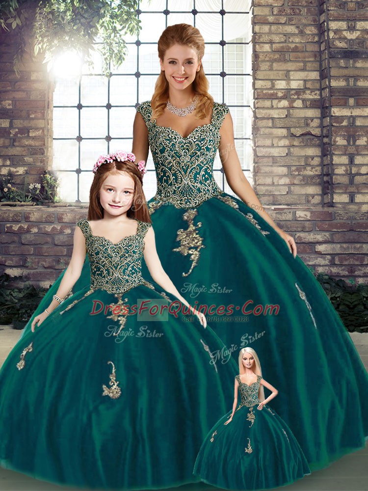 Peacock Green Lace Up Straps Beading and Appliques Sweet 16 Quinceanera Dress Tulle Sleeveless