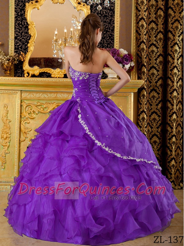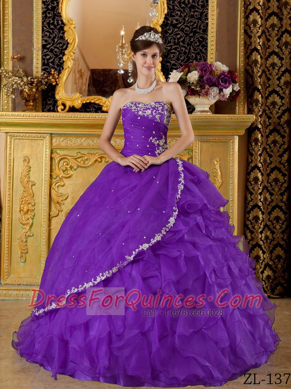 Perfect Discount Eggplant Purple Ball Gown Strapless With Organza Appliques Bule Quinceanera Dress