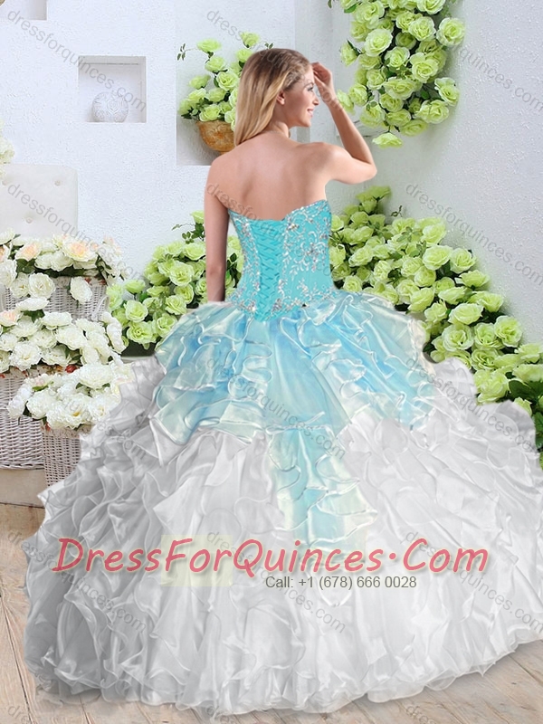 Simple Sweetheart White Quinceanera Gowns with Appliques and Ruffles