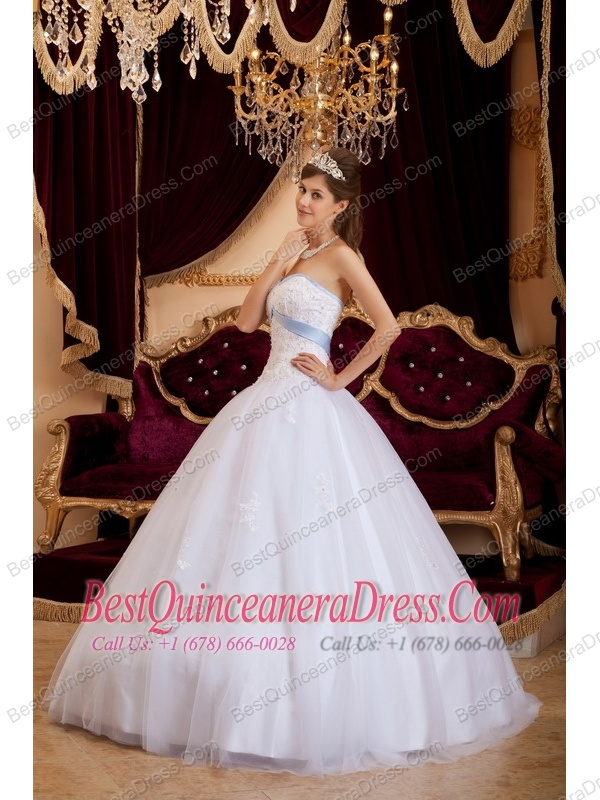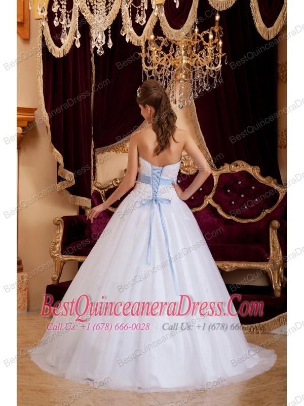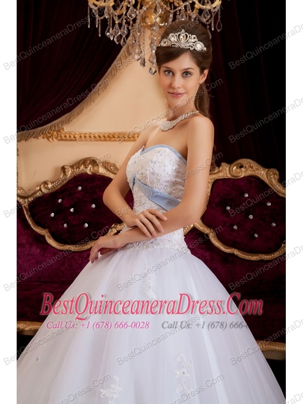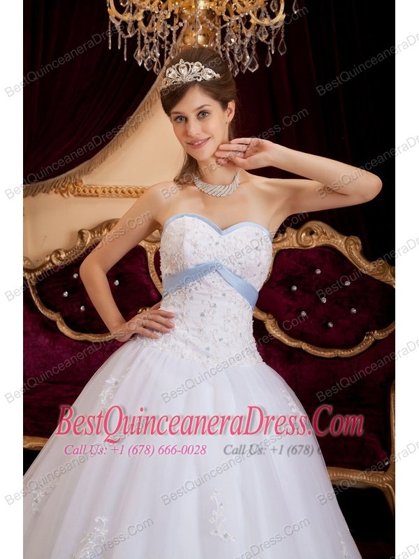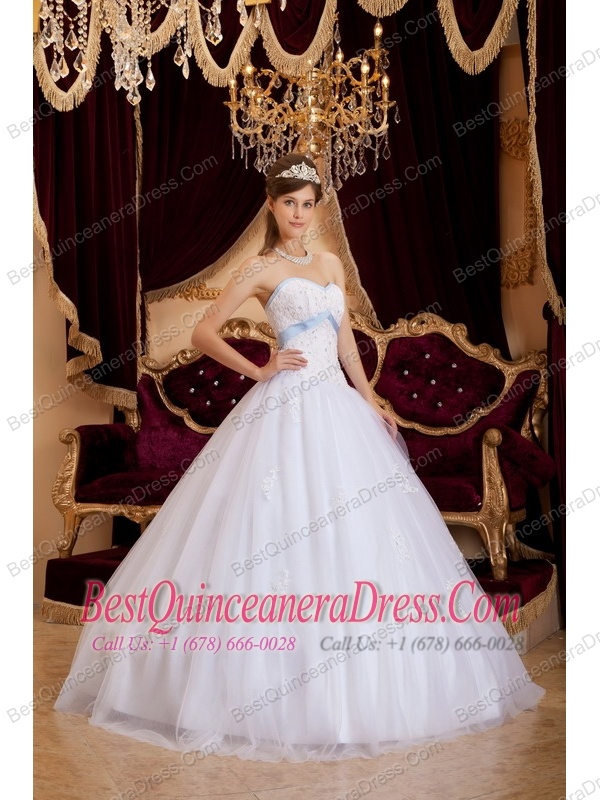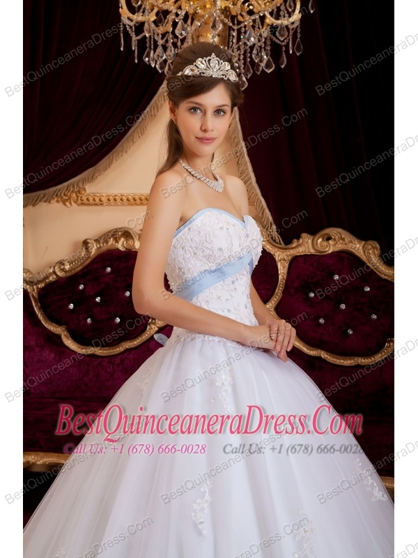 White A-line / Princess Sweetheart Floor-length Appliques Tulle Quinceanera Dress