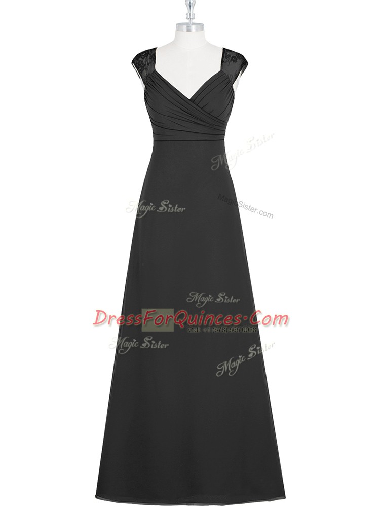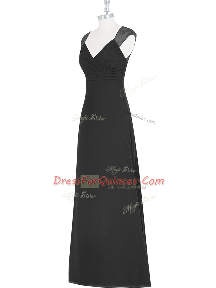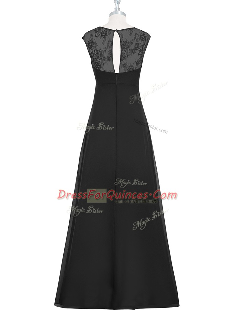Black Zipper V-neck Sleeveless Floor Length Prom Party Dress Lace