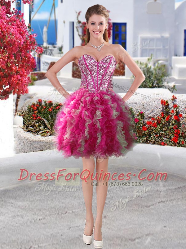 Charming Fuchsia Prom Dresses Prom and Party and For with Beading and Ruffles Sweetheart Sleeveless Lace Up