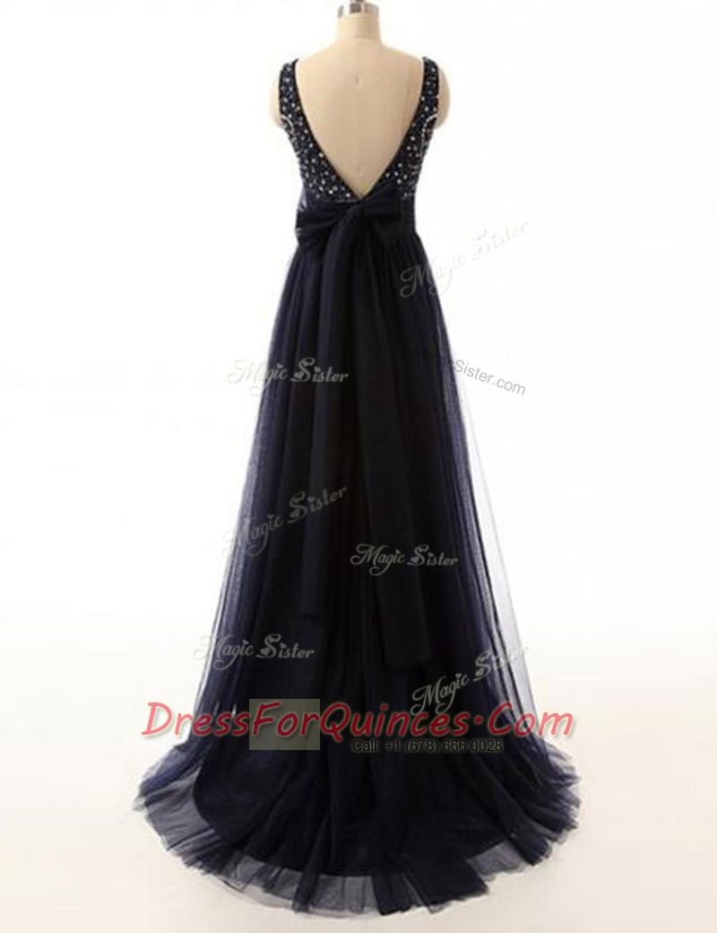 Clearance Sweep Train A-line Homecoming Dress Black Bateau Tulle Sleeveless With Train Backless