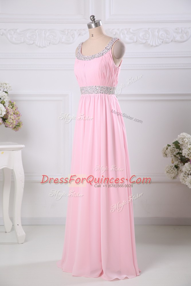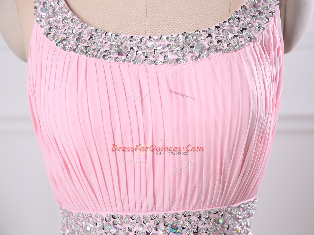 Custom Design Baby Pink Homecoming Dress Prom and Party and Military Ball with Beading and Ruching Scoop Sleeveless Side Zipper
