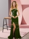 Custom Design Olive Green Column/Sheath Beading Prom Gown Lace Up Elastic Woven Satin Sleeveless