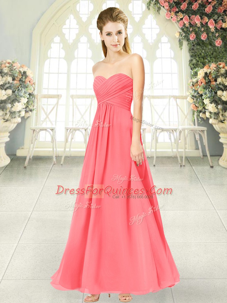 Discount Ankle Length Watermelon Red Prom Gown Sweetheart Sleeveless Zipper
