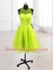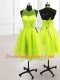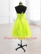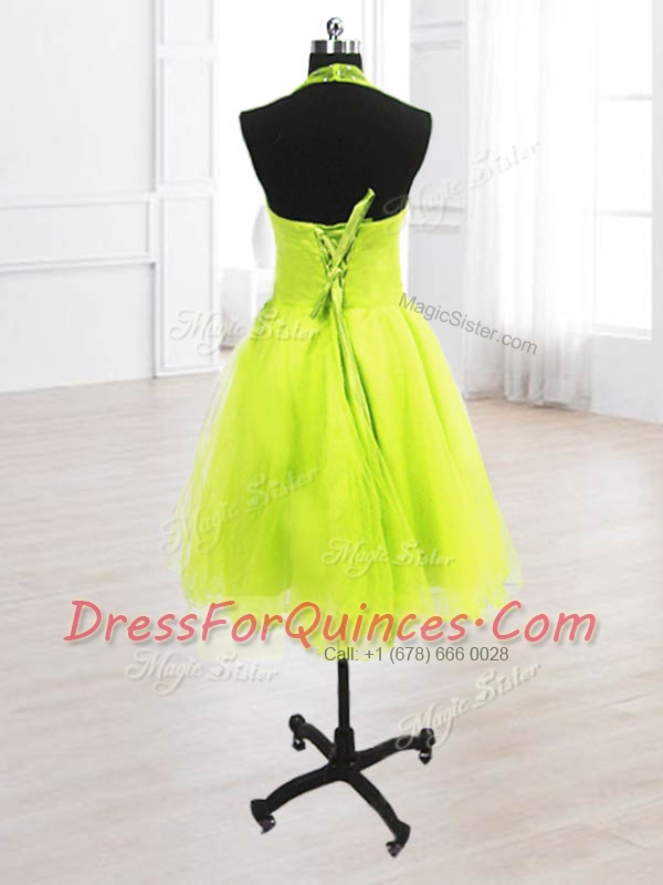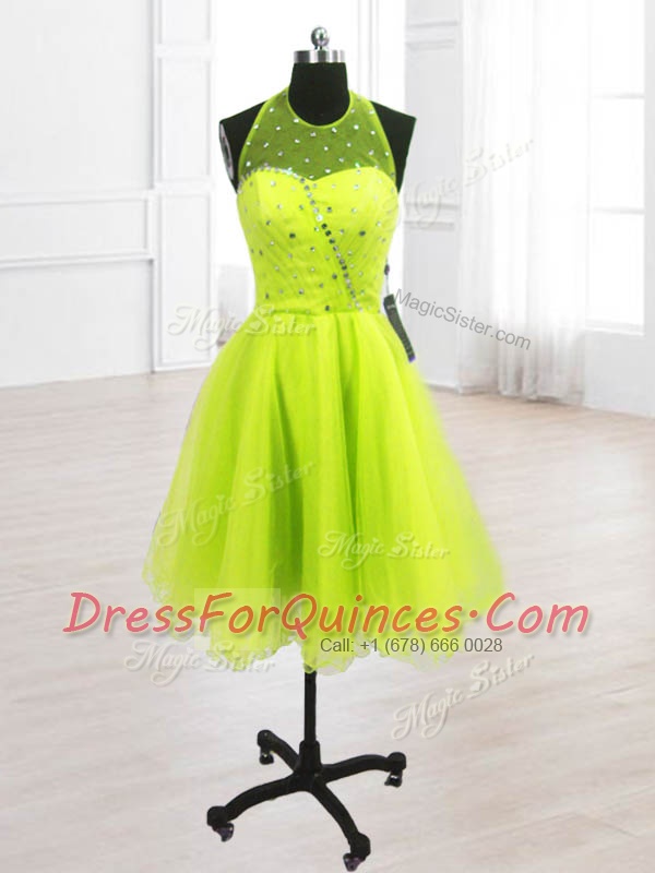 Enchanting High-neck Sleeveless Prom Evening Gown Knee Length Sequins Yellow Green Organza
