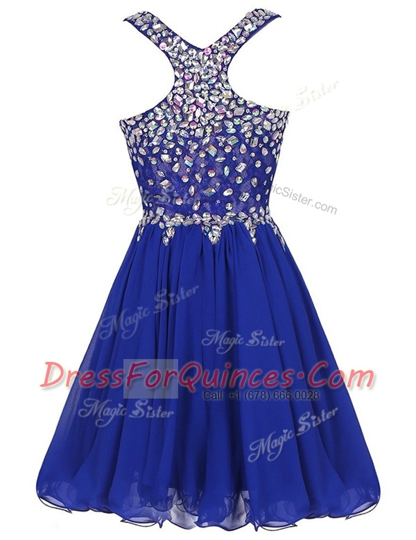 Enchanting Royal Blue Dress for Prom Prom and Party and For with Beading Straps Sleeveless Zipper