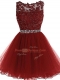 Excellent Burgundy Tulle Zipper Scoop Sleeveless Mini Length Beading and Lace and Appliques