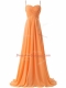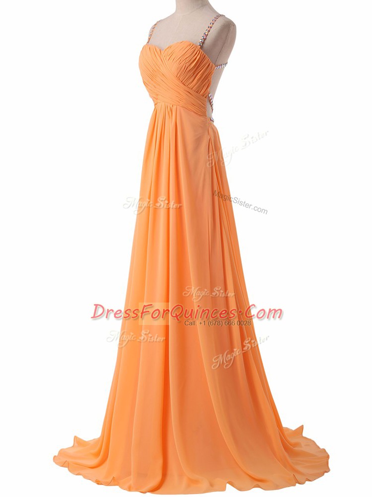 Excellent Orange Prom Dress Chiffon Sweep Train Sleeveless Ruching