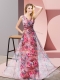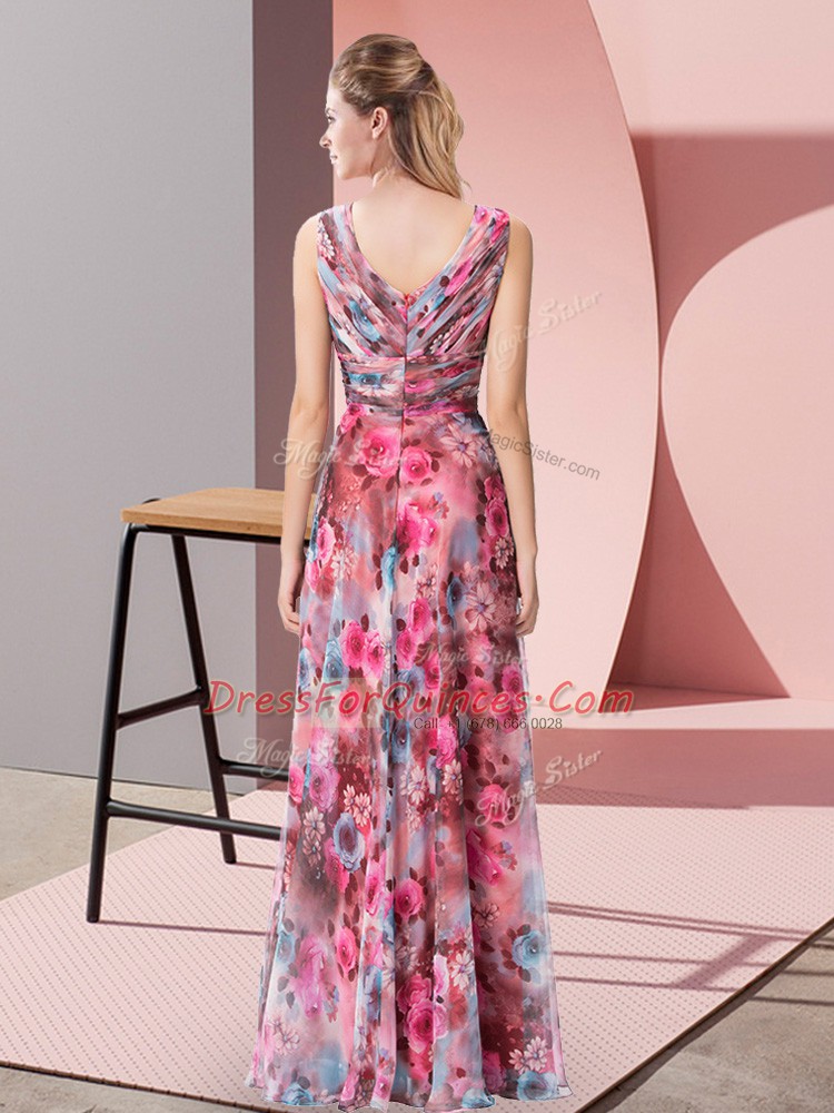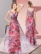 Excellent Printed V-neck Sleeveless Zipper Pattern Evening Dress in Multi-color