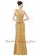 Fitting Gold One Shoulder Zipper Beading and Sequins Prom Dress Sleeveless