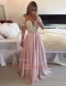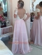 Flare Pink Prom Gown Prom and For with Beading and Lace Scoop Short Sleeves Zipper