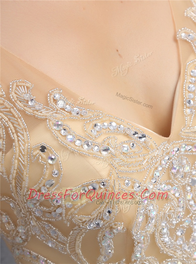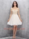 Flirting Sleeveless Chiffon Knee Length Zipper Prom Dresses in Champagne with Beading