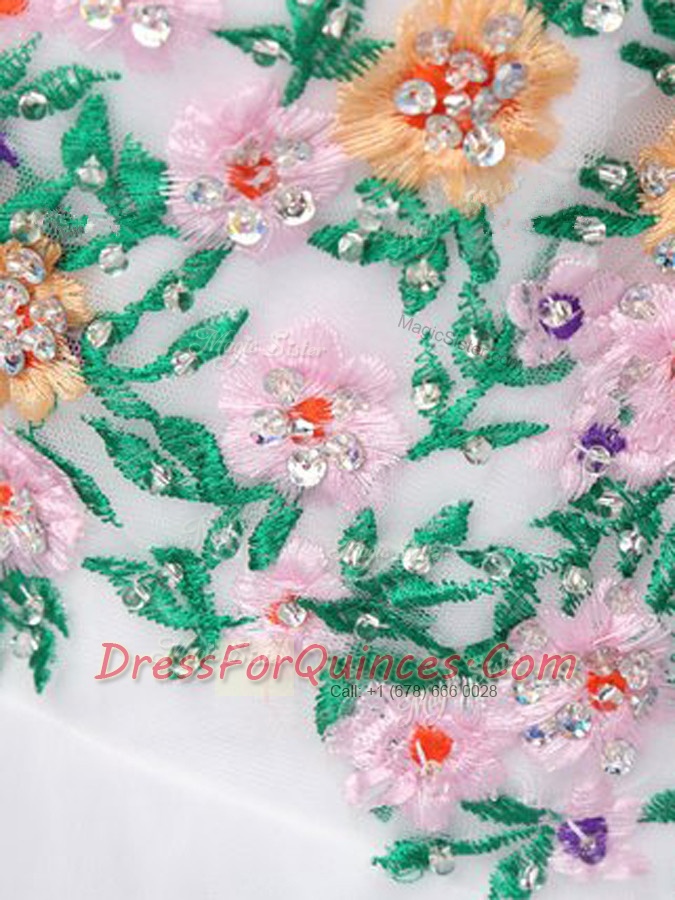 Glittering Scoop White Organza Zipper Homecoming Dress Sleeveless Mini Length Beading and Embroidery