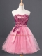 Gorgeous Mini Length Rose Pink Prom Dresses Tulle Sleeveless Sequins