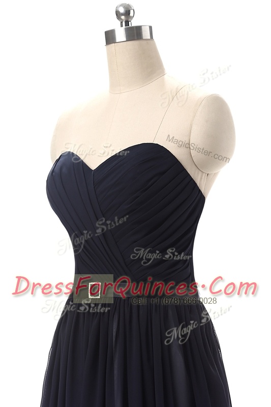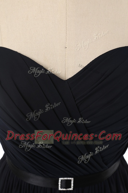 Graceful Blue And Black Sleeveless Floor Length Ruching and Belt Lace Up