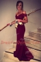 Great Burgundy Empire Satin Off The Shoulder Short Sleeves Lace Backless Prom Evening Gown Brush Train