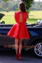 Halter Top Knee Length Backless Red for Prom and Party with Lace