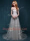 High Class Lace With Train Grey Prom Gown One Shoulder Sleeveless Brush Train Zipper