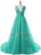 Ideal A-line Sleeveless Turquoise Prom Dresses Brush Train Backless
