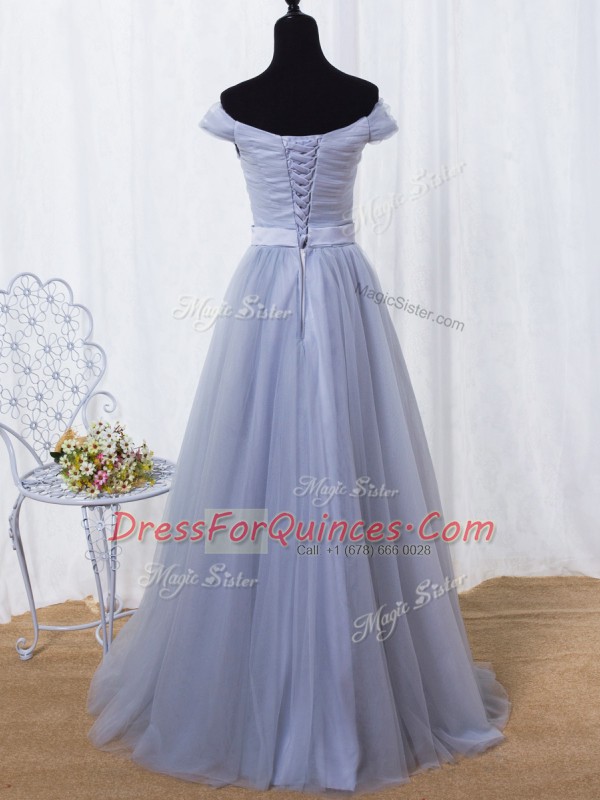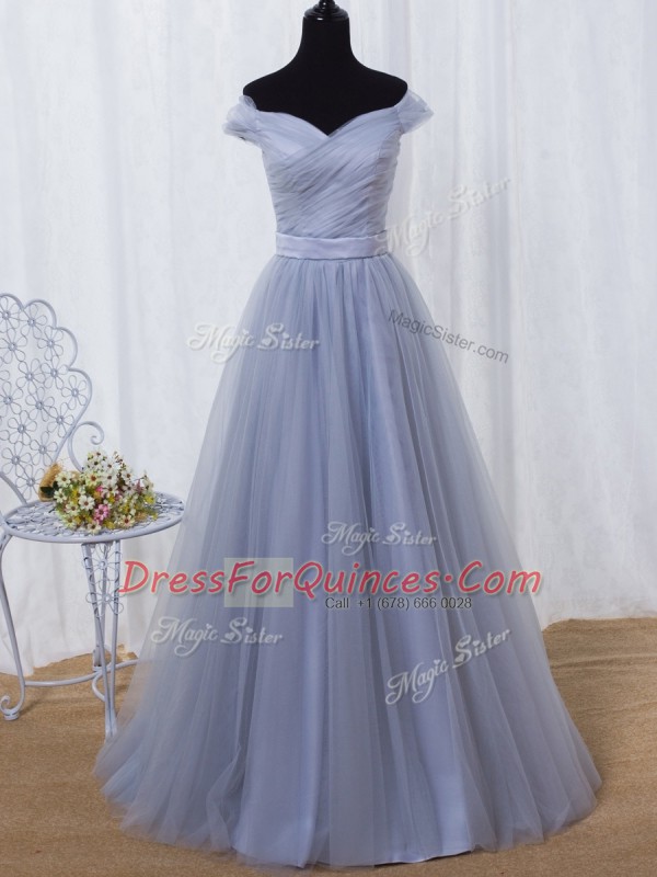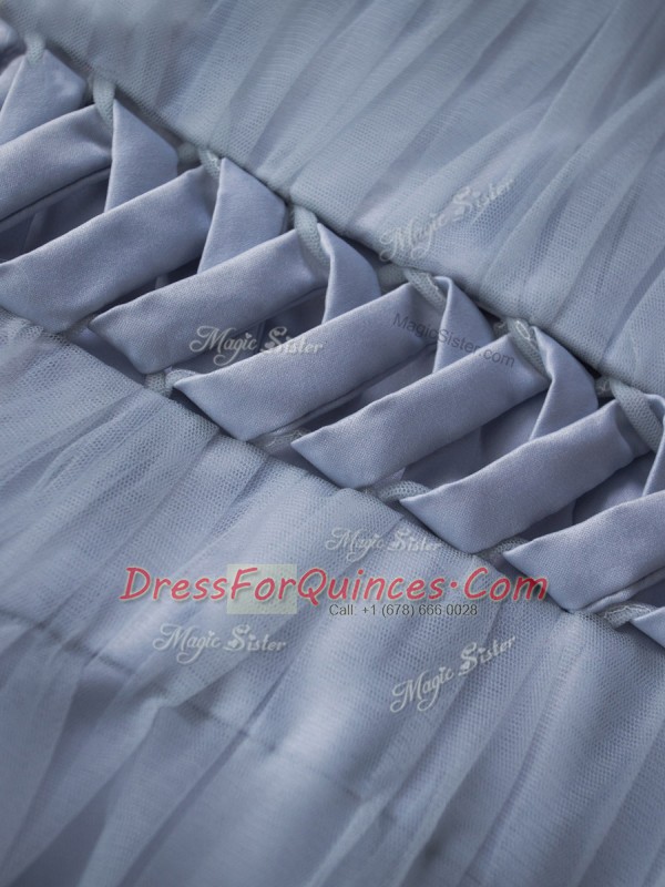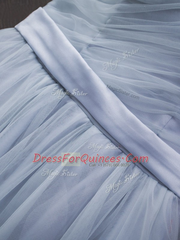 Ideal Lavender Sleeveless Ruching and Belt Floor Length Homecoming Dress