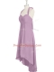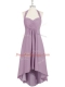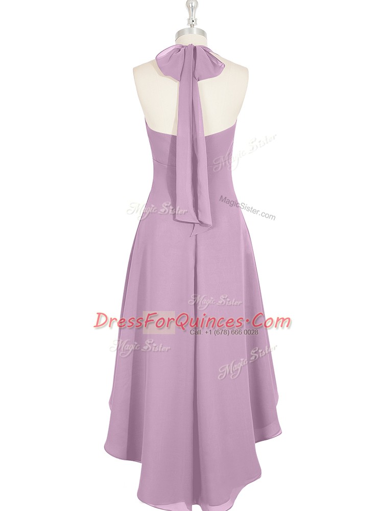 Ideal Lilac A-line Halter Top Sleeveless Chiffon High Low Zipper Ruching Prom Party Dress