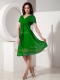 Knee Length Green Dress for Prom Chiffon Short Sleeves Ruching