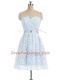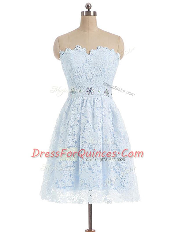 Light Blue A-line Lace Sweetheart Sleeveless Beading and Lace and Appliques Mini Length Zipper