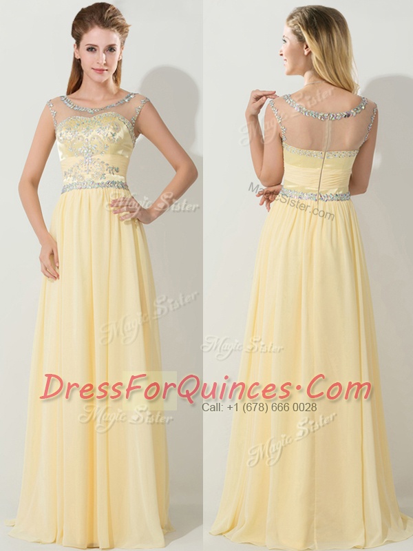 Luxurious Scoop Floor Length Zipper Gold for Prom with Beading