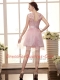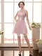 Mini Length Baby Pink Evening Dress High-neck Sleeveless Zipper