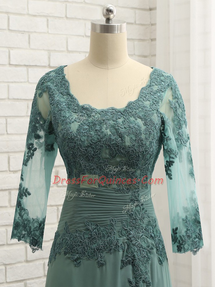 Most Popular Green Prom Gown Prom and Sweet 16 with Beading and Lace and Appliques Scalloped Long Sleeves Zipper