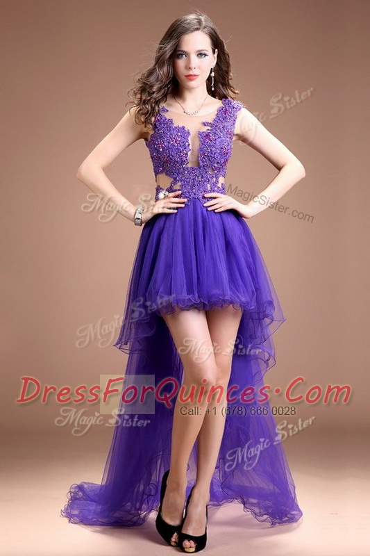 Most Popular Scoop High Low Column/Sheath Sleeveless Purple Prom Dress Zipper